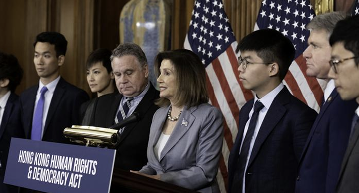 佩洛西9月18日接见黄之锋与何韵诗等数名坏蛋,并藉此向中国喊话,表示美国国会基于人权,支持香港示威者。
