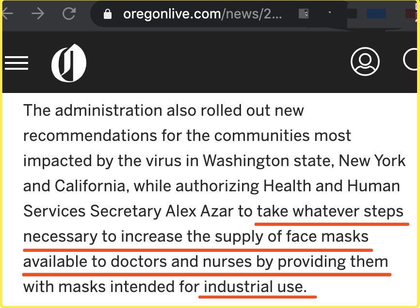 美国政府还采取必要措施,增加医生和护士的口罩的供应,为他们提供工业用的口罩。