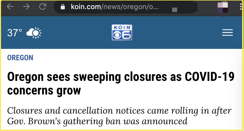 KOIN媒体称,在布朗州长宣布禁集会令后,越来越多的取消或关闭通知不断涌现。
