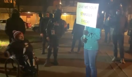 上面写着“如果你是反政府主义者,把你的1400美元刺激救济给我”。