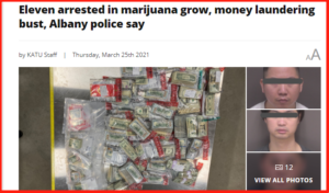 3月24日和25日这两天,美国俄勒冈州多个市的警察局向媒体曝光,11人因非法制造大麻和通过餐馆洗钱被捕。他们全部是华人。