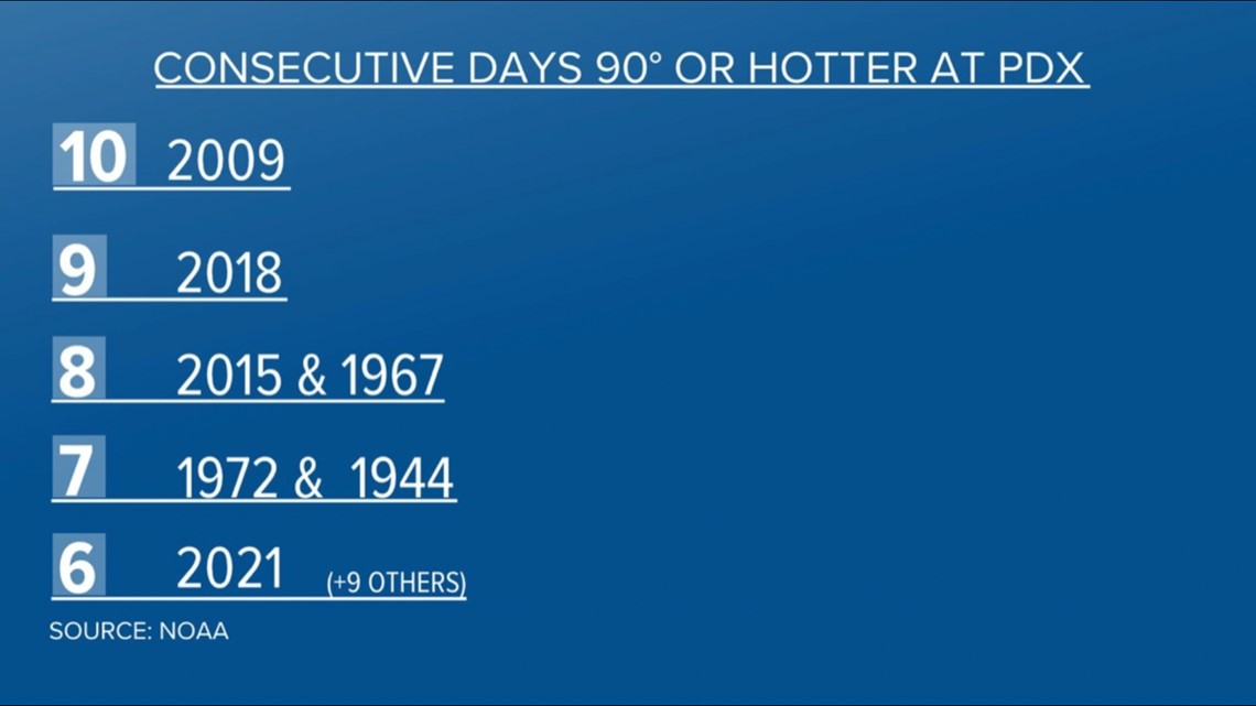 波特兰星期日打破了40年来的记录,连续7天最高气温在95华氏度以上。