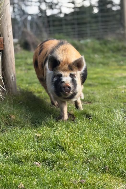 现在,这只127磅重的肥嘟嘟的可爱的宠物猪在俄勒冈城的农场( The Buxton Farm)安家。它还拥有了一个新的名字叫布洛克(Brock)。