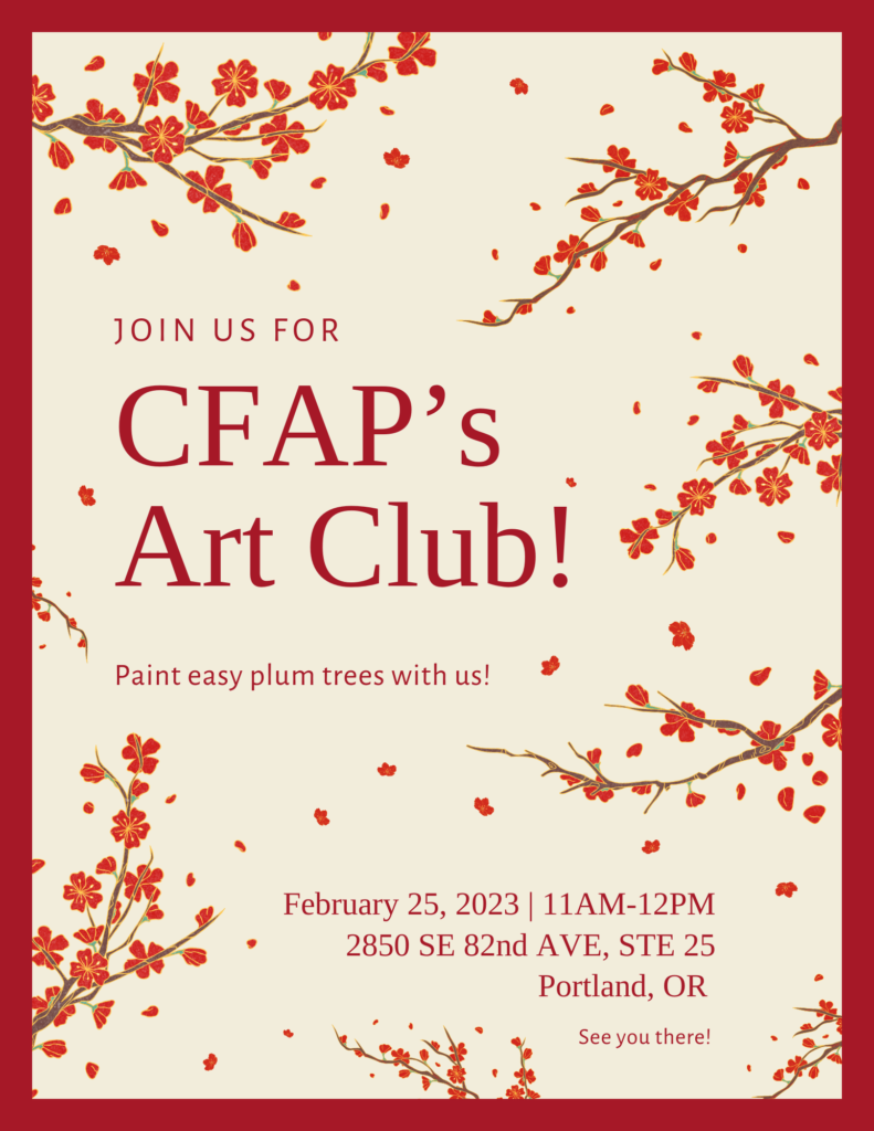 2月25日上午11时至12时,同一地点,波特兰中国联谊会为少年儿童举办绘画活动,有高中生带领绘画梅花,欢迎大家参与。