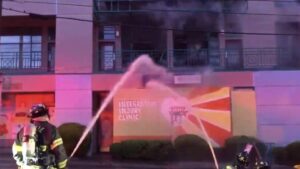 大约早上4点半,位于815 South Weller Street的Eng Suey Family Plaza商业楼发生火灾。警报多次响起。