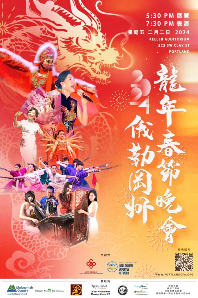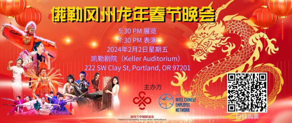 庆祝2024年龙年新春佳节,波特兰中国联谊会和英特尔华人联盟于2024年2月2日在凯勒剧院(Keller Auditorium)携手举办俄勒冈州2024盛大春节晚会!