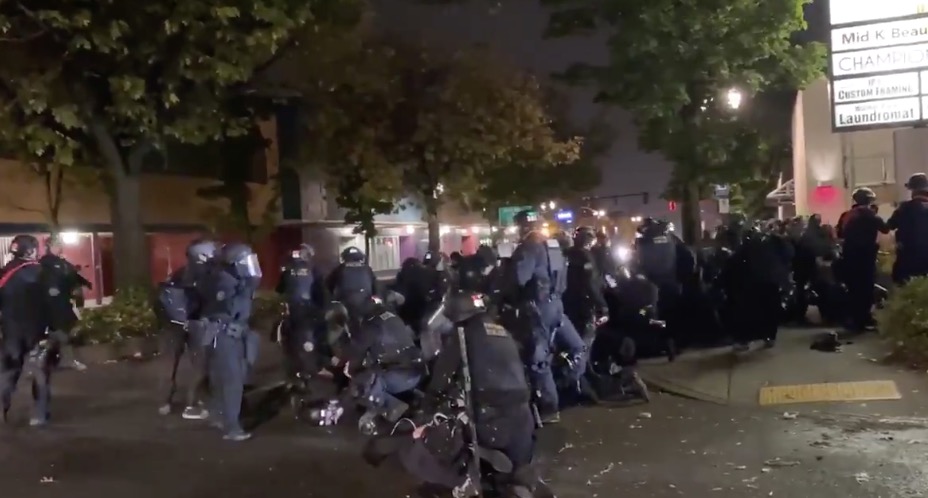 星期六晚上的抗议,波特兰警察局没有像以前那样等到那些人暴力破坏才行动,而是提前清场!