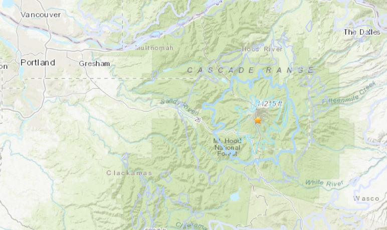 刚刚,晚上9点左右,美国俄勒冈州雪山(又叫胡德山,Mt. Hood)东北部 14 英里处发生了 3.9 级地震。