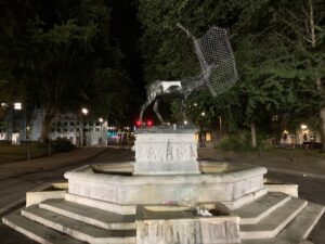 媒体说,昨天波特兰警察清空了司法中心外的示威者补给帐篷,并逮捕了一名志愿者。
