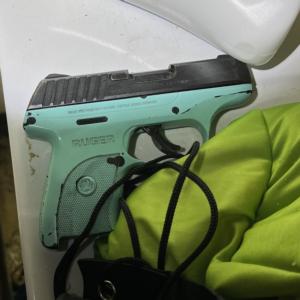 调查期间,增强社区安全小组(ECST)执行了针对嫌疑人公寓的搜查令,并查获了一把疑似在枪击案中使用的半自动手枪。该手枪为青绿色框架、黑色滑块设计,照片显示其与一些衣物一起摆放在桌面上。