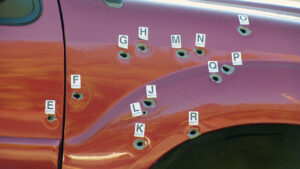 子弹打穿了妇女汽车的挡风玻璃,她本人也差点中枪。