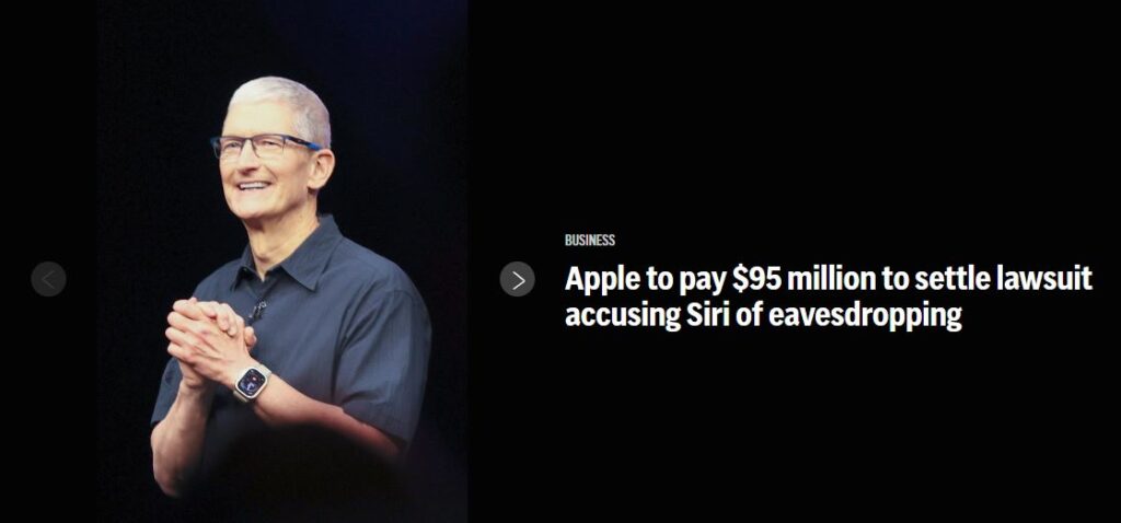 - 苹果赔钱了!9500万美元砸下来,Siri窃听案和解,来“薅苹果毛”! 2025年1月6日