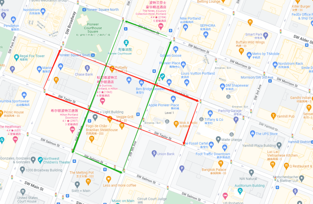 目击者说,北起Yamhill南至Taylor,东起4大道西至Broadway街已封;北起Morrison南至Salmon,东起5大道西至6大道已封。