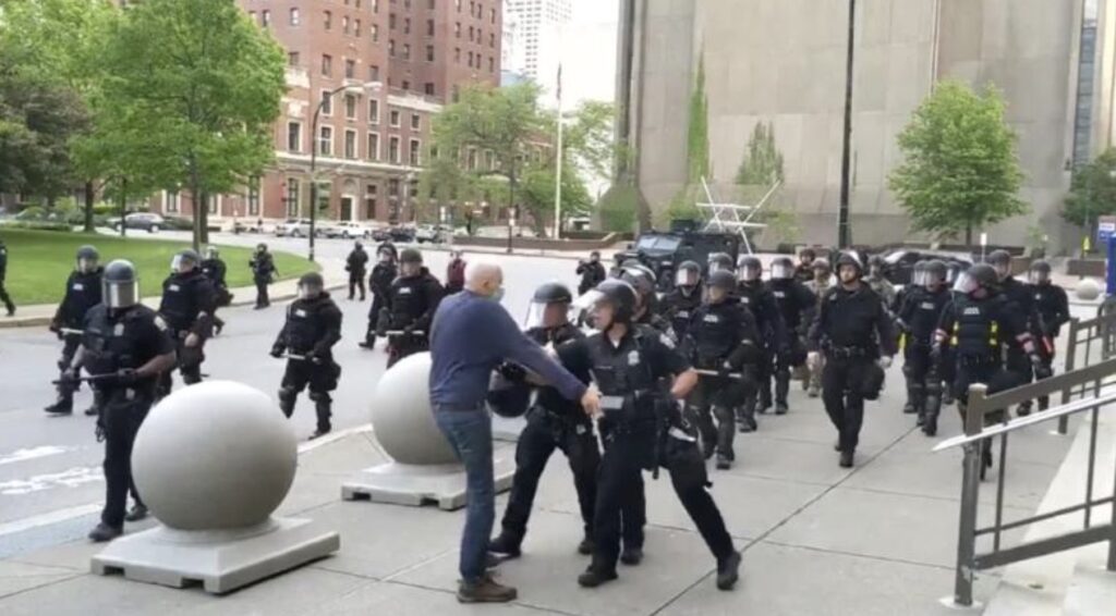 CNN 6月5日报道,纽约州布法罗(Buffalo)市两名涉嫌将一名75岁抗议者推倒在地的警察被停职。