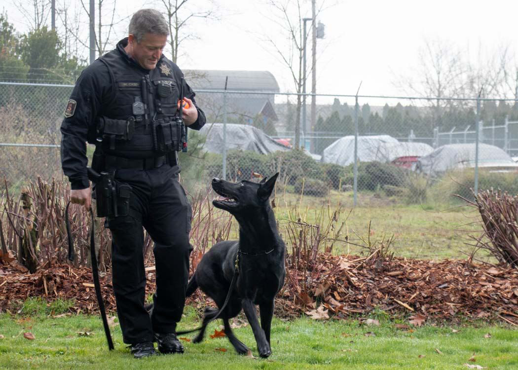 警察放出警犬并大喊:“停下,趴下!” 贼子无视警告,就在警犬差点抓住他时,他跳进湖中!