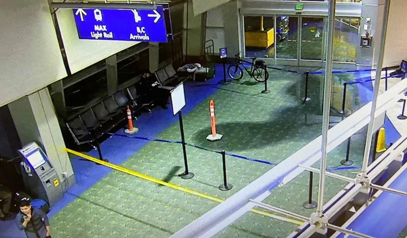 1月14日星期日凌晨,波特兰国际机场售票大厅的两根水管因严寒而破裂。