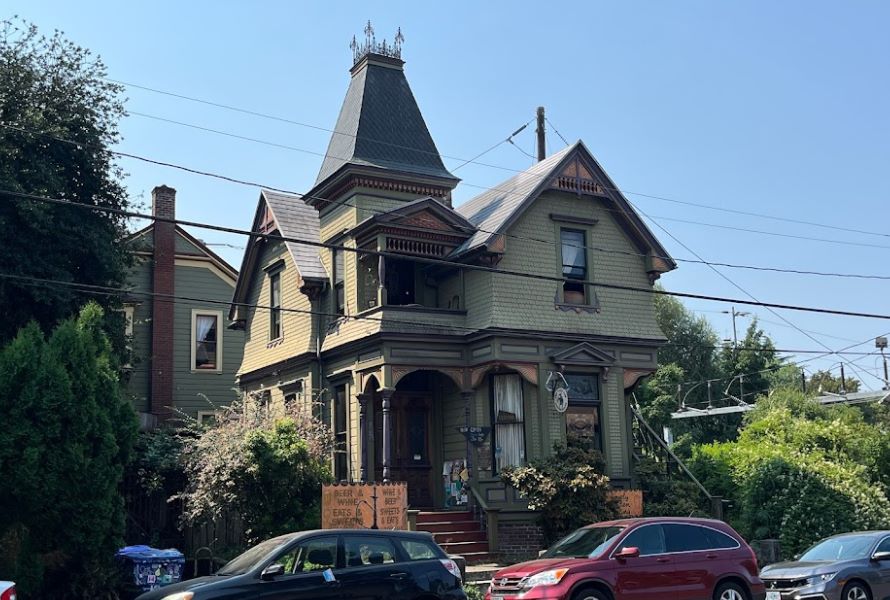Pied Cow咖啡馆所在的房子是一座拥有百年历史的老房子,是波特兰奇怪的景点之一。Pied Cow咖啡馆关闭后,这座房子将出售。
