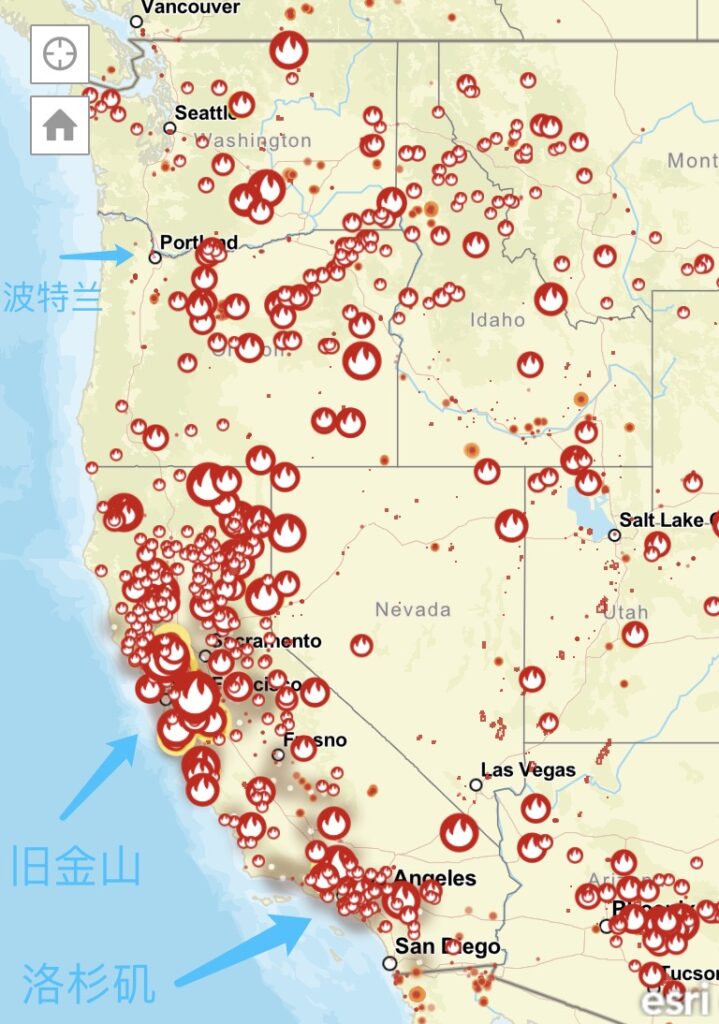 目前为止,美西海岸三个州都因野火而宣布紧急状态!
