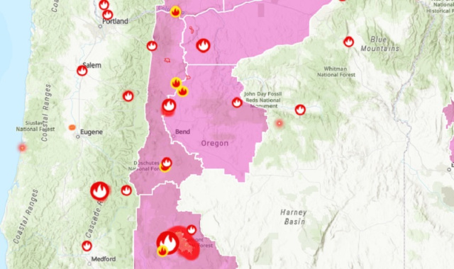 截至星期四早上,发生在俄勒冈州南部Glide的山火 Jack Fire 蔓延超 15,248 英亩。