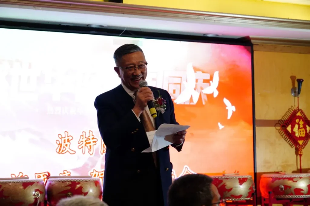 中华人民共和国驻旧金山总领馆副总领事杨守征发表致辞,首先向到场的俄勒冈州各级政府官员、侨团领导和嘉宾致以诚挚问候,并代表中国驻旧金山总领事馆向广大侨胞送上美好祝愿。他感谢波特兰侨界多年来坚持举办国庆晚会,为弘扬中华文化作出的贡献,并向所有为中美友好付出心力的人士致以崇高敬意。杨守征介绍,自己在晚会前一天抵达波特兰,参加了兰苏园与波特兰–苏州姐妹城市协会的活动,并与各级政府官员及侨界领导会面,深切感受到波特兰华人社区的影响力与凝聚力。他还在兰苏园与市长见面,并于晚会前与市长单独交流,市长高度重视华人社团诉求并承诺保障社区安全,充分体现了波特兰主流社会对华人社区努力的认可。谈及国际局势,杨守征回顾了近日在北京举行、举世瞩目的九三阅兵,他提到这一场面震撼人心,无论现场还是电视机前的观众都深受感动,他以女儿为例说明年轻一代同样拥有深厚的爱国情怀。他指出,76年来中国坚持改革开放,取得举世瞩目的成就,保持稳中向好的发展态势;今年又值世界反法西斯战争和中国抗日战争胜利80周年,中美两国当年并肩作战、共同守护和平与正义,华人社群在美国也为抗战胜利作出了重要贡献。杨守征强调,80年过去,尽管世界变化巨大,但中美关系发展的基础未变,稳定健康的中美关系符合两国及两国人民的根本利益,并重申台湾问题是中国的核心利益。最后,他感谢俄勒冈州华人各界长期推动中美友好,祝愿祖国国泰民安、繁荣昌盛,并祝中美两国人民世代友好、在座宾客国庆与中秋双节快乐。