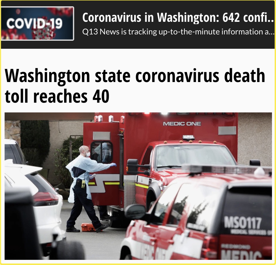 华盛顿州方面,截至写稿,累计确诊新冠病例达642个,死亡40个(星期六新增4个死亡病例)。