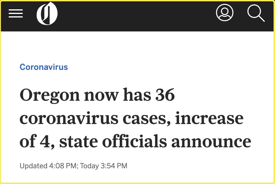(翻译兼原创)俄勒冈卫生局刚刚证实,俄州又有4人新冠病毒检测呈阳性,使俄州的新冠病患数达到36例!另,波特兰摩特诺玛县的唯一一例宣告死亡!