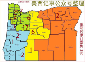 (翻译兼原创)俄勒冈州卫生官员3月19日星期四早上报告新增13例新冠病例,俄州已确诊的病例总数已达到88例。新增病例中,Marion县有五个,Multnomah县有四个,Washington县有两个,Linn县有两个。