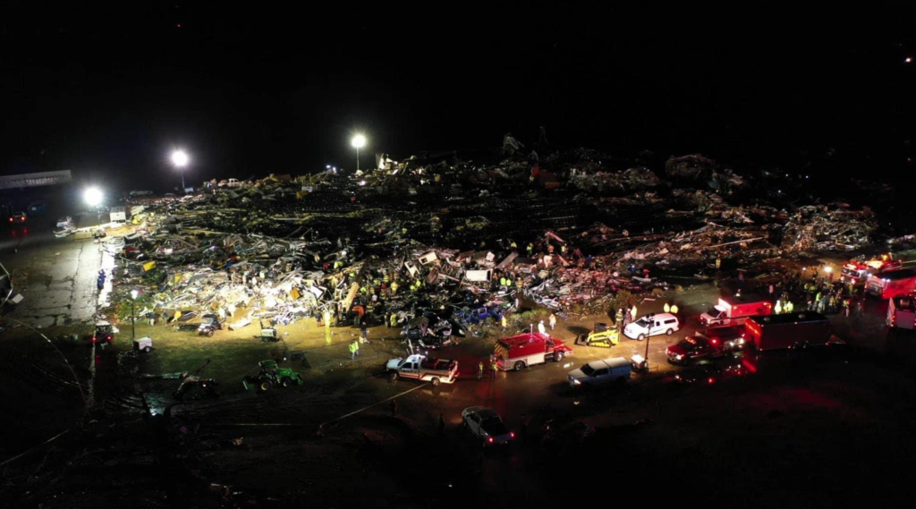 12月12日,特大龙卷风在星期五夜里横扫美国六州之后,绝望的搜救工作仍在继续!