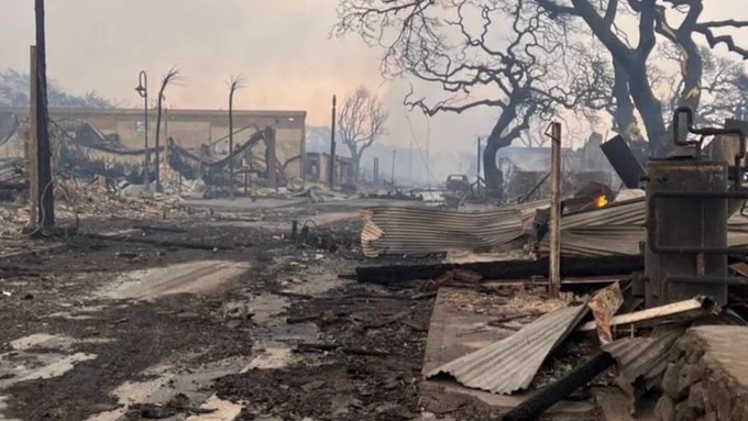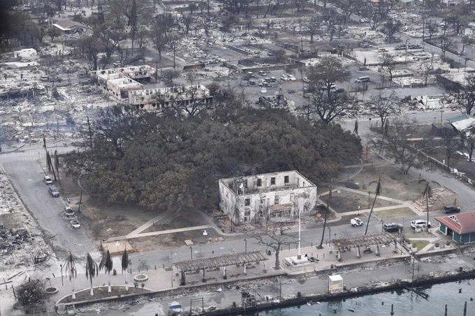 夏威夷州州长说,历史名镇拉海纳镇(Lahaina)“悲惨地消失了”,估计有 1000 多座建筑物被毁。