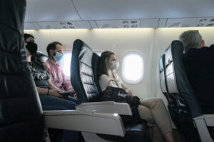 目前,美国所有主要航空公司都要求乘客戴口罩乘坐飞机,仅在吃东西时才允许脱下口罩。
