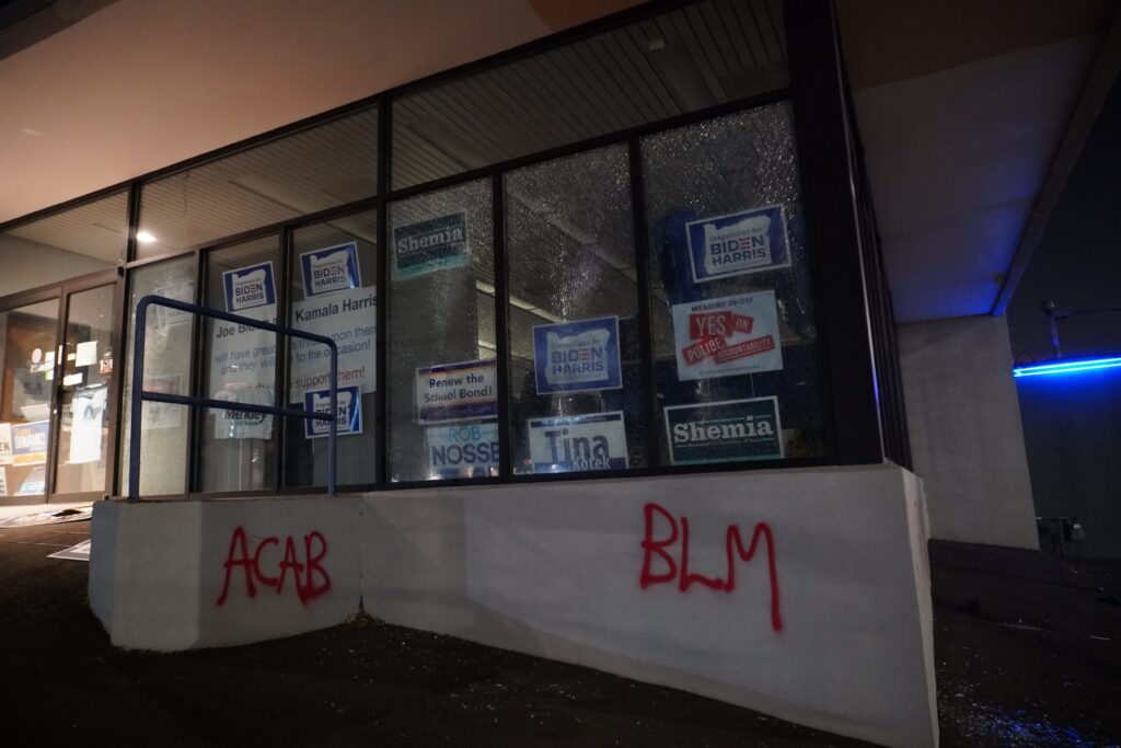 俄勒冈州 快报!民主党办公室被“黑人生命很重要”砸玻璃! by Malldone2020年11月8日2020年11月8日 11月8日星期日晚上大约10点左右,位于波特兰的民主党县级办公室被“黑人生命很重要”支持者和Antifa组织砸玻璃! 民主党办公室地址:3551 NE Sandy Blvd, Portland, OR 97232 民主党办公室被砸后,抗议者撤离,在途中被波特兰警察拦截。发稿时,事件正在发生,抗议者与警察对抗中。 抗议者在民主党办公室墙上涂鸦“XX拜登”“XX警察”“黑人生命很重要”等字。 俄勒冈州民主党州长布朗当天下午时已经下令撤离“联合指挥部”。 同类报道或信息来源:小伙伴回报 ShareShare