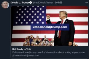 《摩登时讯》整理新闻时,大约太平洋时间中午12点左右,特朗普在他的推特分享了准备投票的网页。