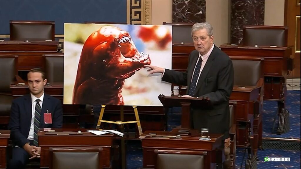 共和党参议员约翰·肯尼迪(John Kennedy)也承认“自己有偏见”,因为推动美国本土虾产业将为家乡带来更多利益。他随后将这段“异形虾”演讲视频上传到社交平台X,仅两天就收获了超过150万次观看。