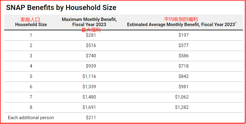 但是!疫情前,不是按“最大福利”发放,而是根据每个家庭的净收入发放不同的金额。疫情前,一家三口平均每月领取586美元;一家四口每月718美元;一家五口每月842美元。