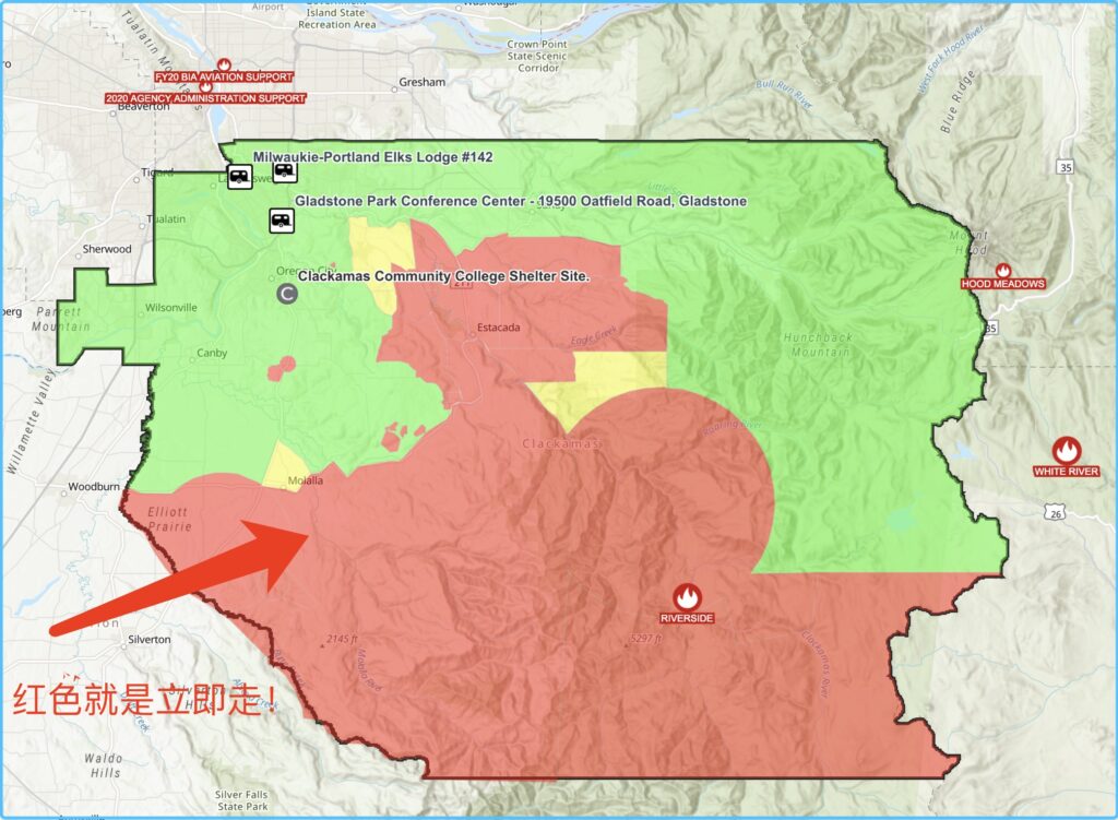 Clackamas县紧邻波特兰东南区!这个县大部分地区都处于三级撤离令立即“走”,其他华人聚居地Happy Valley,Oregon City,Lake Oswego处于1级撤离令准备“走”!