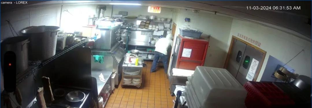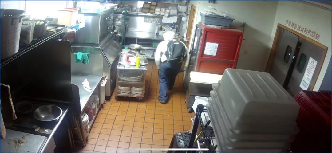 监控录像显示,窃贼直接奔向厨房,在厨房内翻锅掀碗、四处搜寻,足足停留了5分钟以上。无奈鱼乐轩菜肴广受欢迎,从不剩饭菜,即使有也不会留存,令窃贼一无所获。