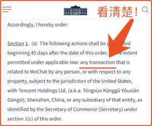特朗普的行政命令,代表着两国关系进一步恶化。但他的命令全文没有说过禁用微信!
