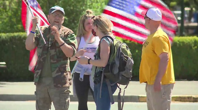 示威者驾驶着汽车,一辆接着一辆驶过州议会大厦,大按喇叭,弄得噪音四起,异常剌耳。示威活动吸引了一些特朗普支持者到场声援。他们在议会大厦外面的人行道上挥舞着美国国旗,没戴口罩,且特别兴奋。