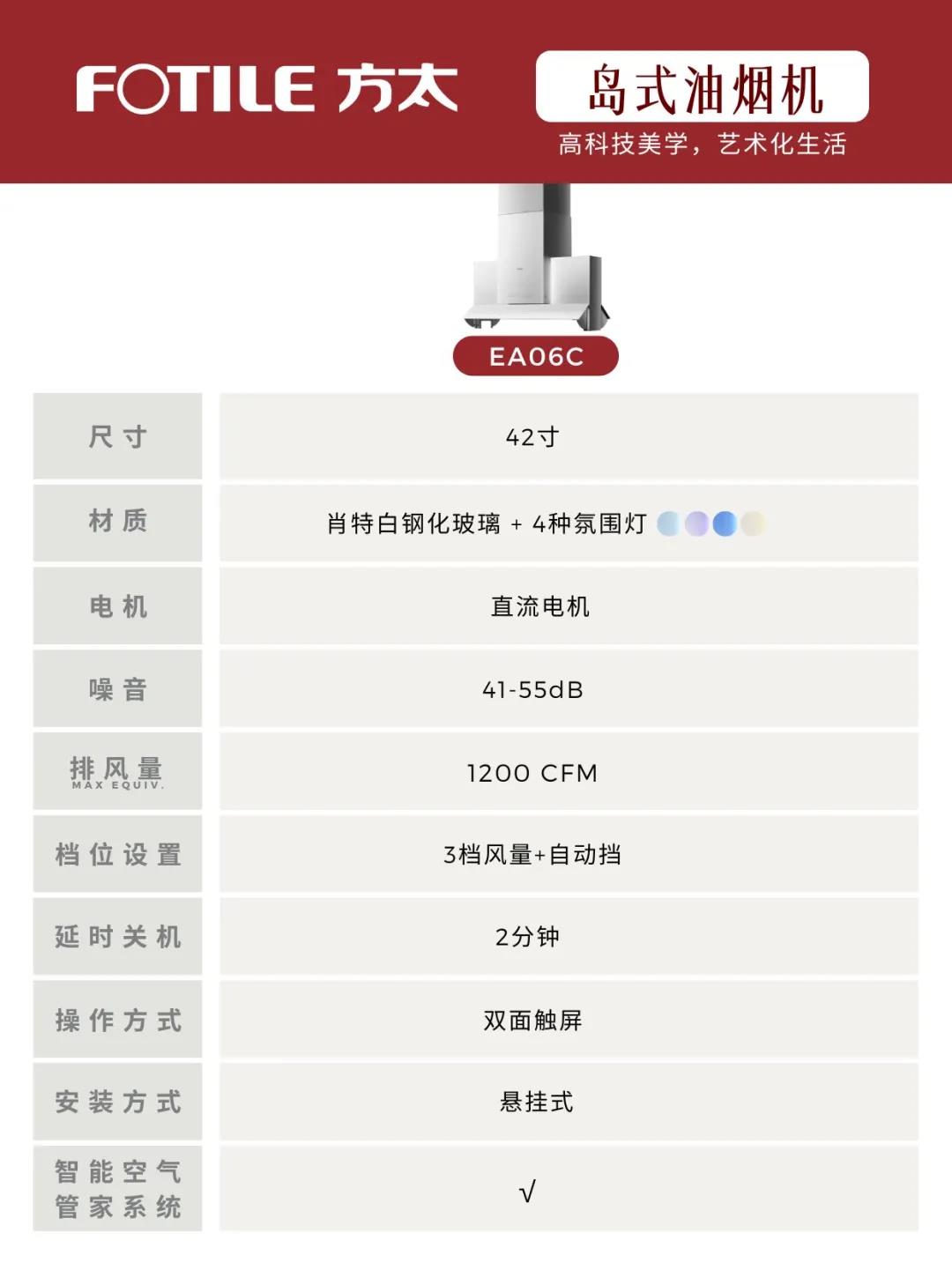 搭配大岛台,成为厨房“吸睛点!4种氛围灯光,艺术生活,智能体验。42寸双面开合55°挡烟板,拢烟范围加长加宽,油烟不易逃逸;搭载直流变频电机,1200CFM强化排烟效率。还能实时监测厨房空气质量,发现“油烟,香烟,甲醛,一氧化碳”等有害气体超标时,实现响应吸净,享受健康呼吸。双面控制面板,烹饪也能从容不迫。