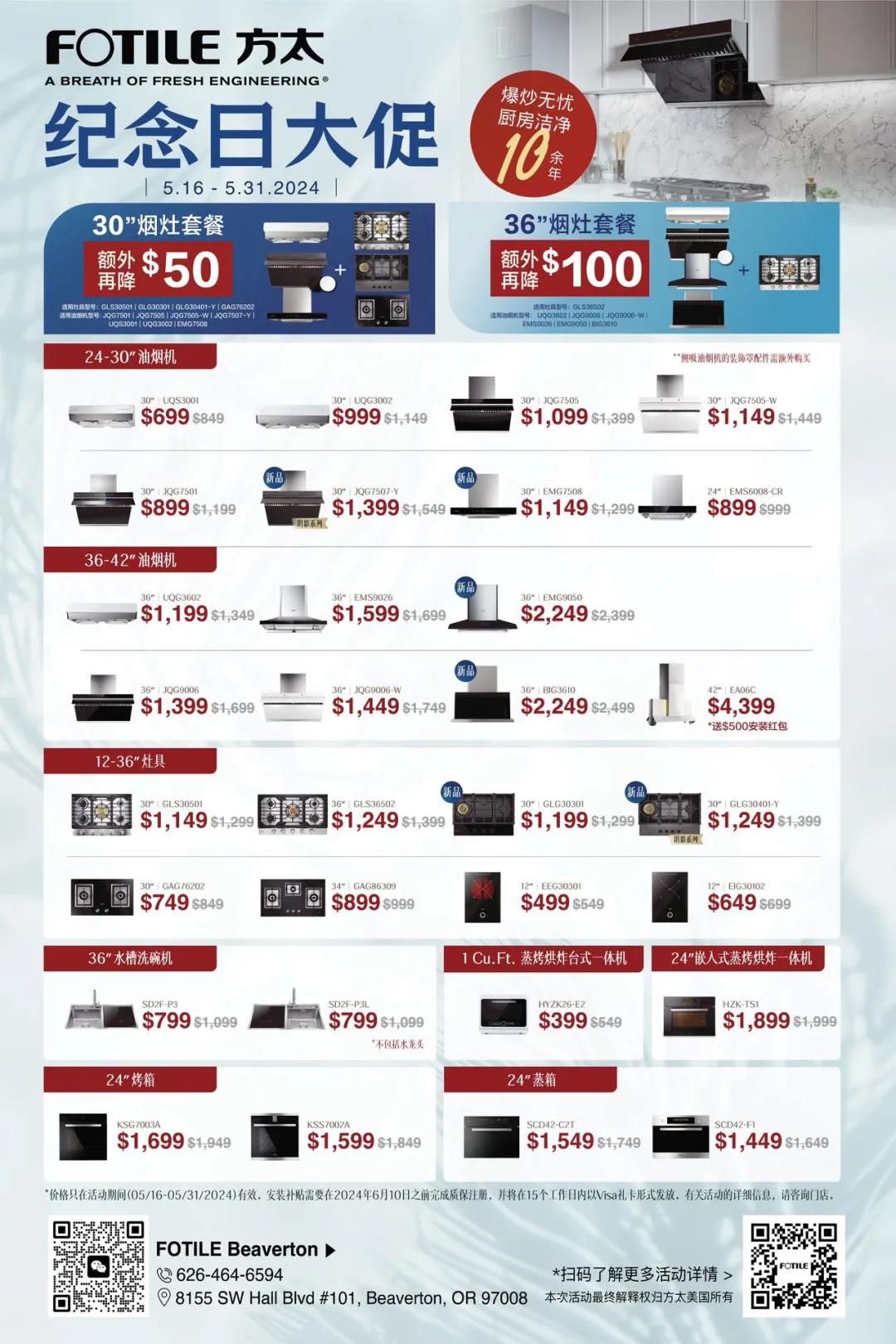 烟灶折上折:30“套系额外优惠$50,36”套系额外优惠$100。