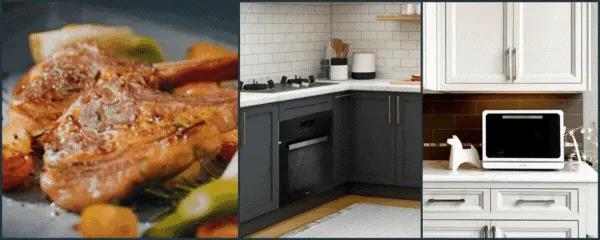 厨房必备神器!蒸箱,烤箱,空气炸锅,和果蔬脱水机的一体设计颠覆厨房。ChefCubii台式蒸烤烘炸一体机更小的空间却能满足烹饪的种种需求,配有40道智能菜谱,烹饪更简单(小方盒线上款,小魔盒仅线下有售)。24寸嵌入式蒸烤烘炸一体机内置52道智能菜谱。4大功能,精准控温,无论是节日大餐,还是无添加零食,都能轻松搞定。蒸汽自清洁功能,方便又省心。一款让幸福感爆棚的专业级蒸烤烹饪机!