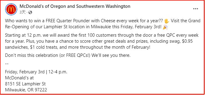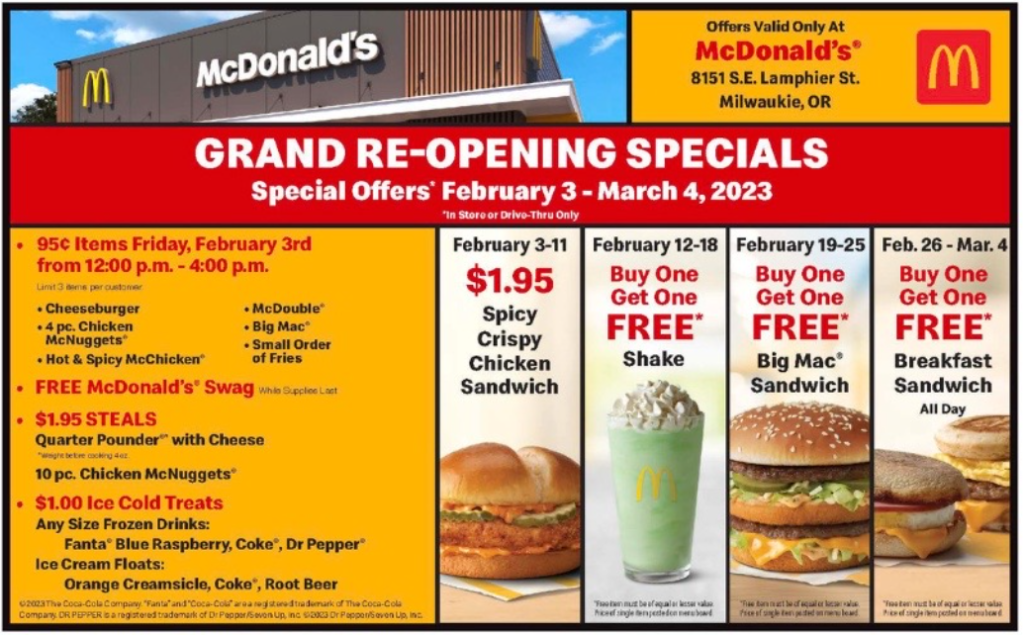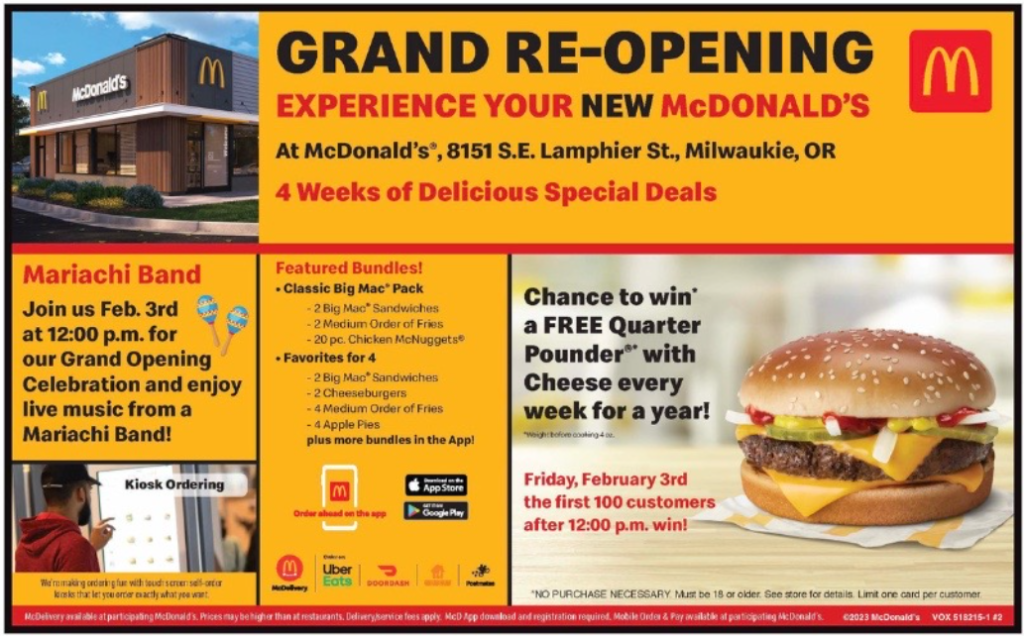 2月3日星期五,波特兰东南82街BestBuy对面公路的麦当劳重新装修盛大开业!