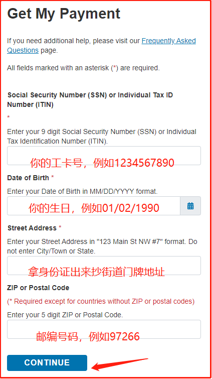 如上图,填写资料,点”CONTINUE”