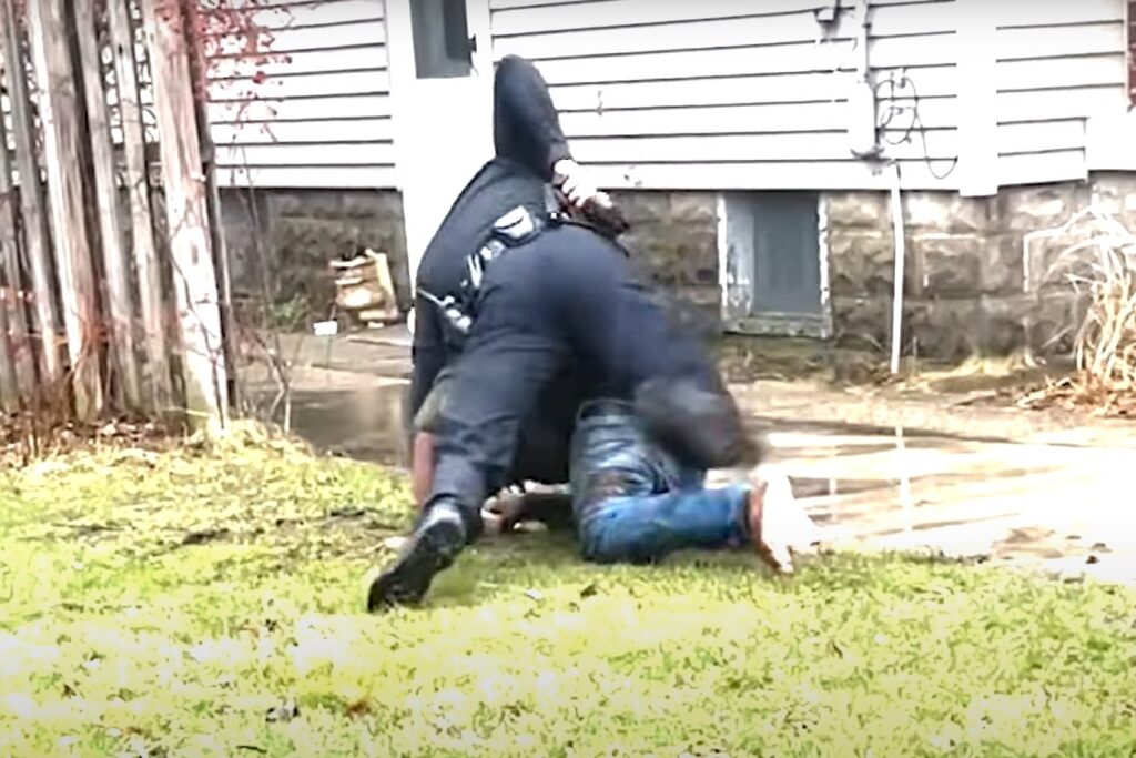 警察追着黑人男子,最终将他倒在地上。期间,警察多次要求黑人男子“停止”、“停止抵抗”。