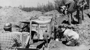 车辆行驶100英里后,孩子们和司机被劫到一个偏远的采石场。绑匪们命令27名受害者进入一个看起来像坟墓的地方——埋在地下2米深的货车车厢!