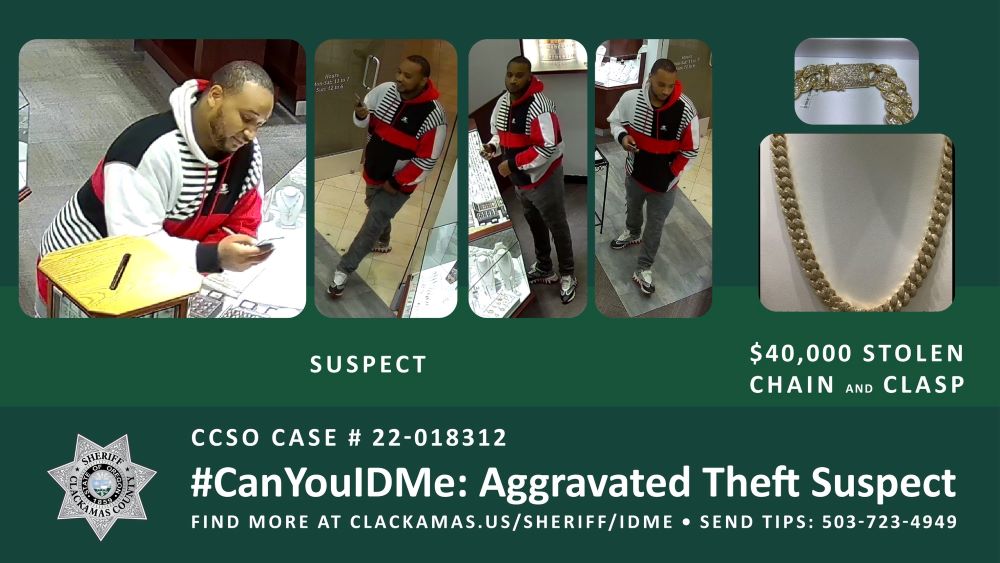 克拉克马斯县(代表城市:Happy Valley)警长室正在寻求公众的帮助,以逮捕抢走价值4万美元项链的零元购犯罪分子。