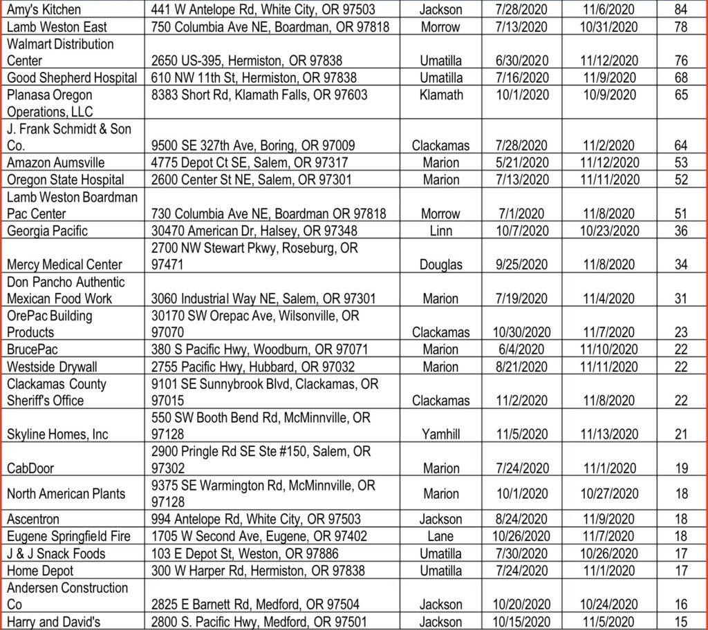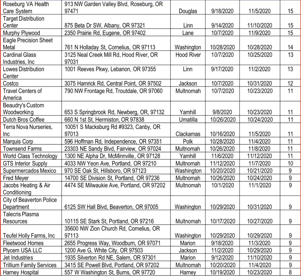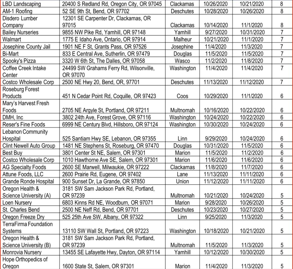 原文标题:Here are the 96 active COVID-19 workplace outbreaks in Oregon