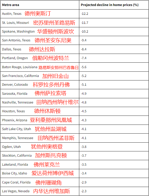 美国房地产网站realtor.com报告,经过多年的房价和利率上升,全美国的房价都将在2024年下跌!