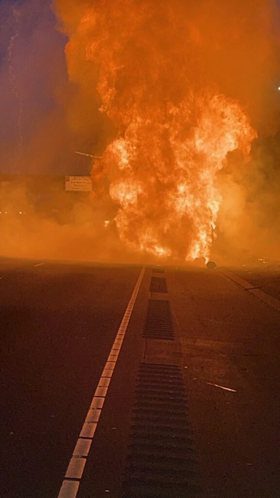 消防局立即封锁了北行和南行所有车道,调动了大量水源去灭火。