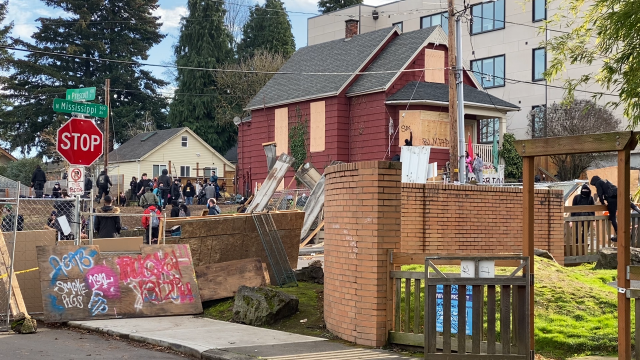 Protesters in Portland are occupying space around Mississippi Avenue following police returning to the “Red House,” where a local family is being evicted pic.twitter.com/C4b4JRhN7T
